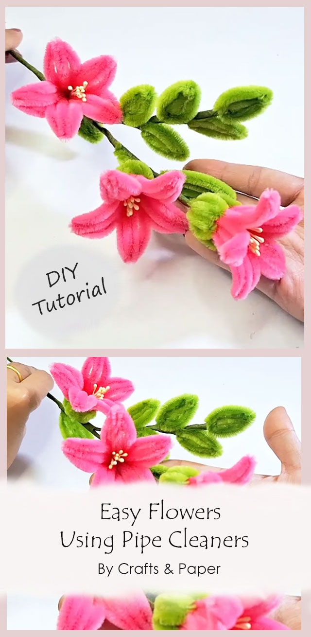 2. Easy Flowers Using Pipe Cleaners By Crafts & Paper